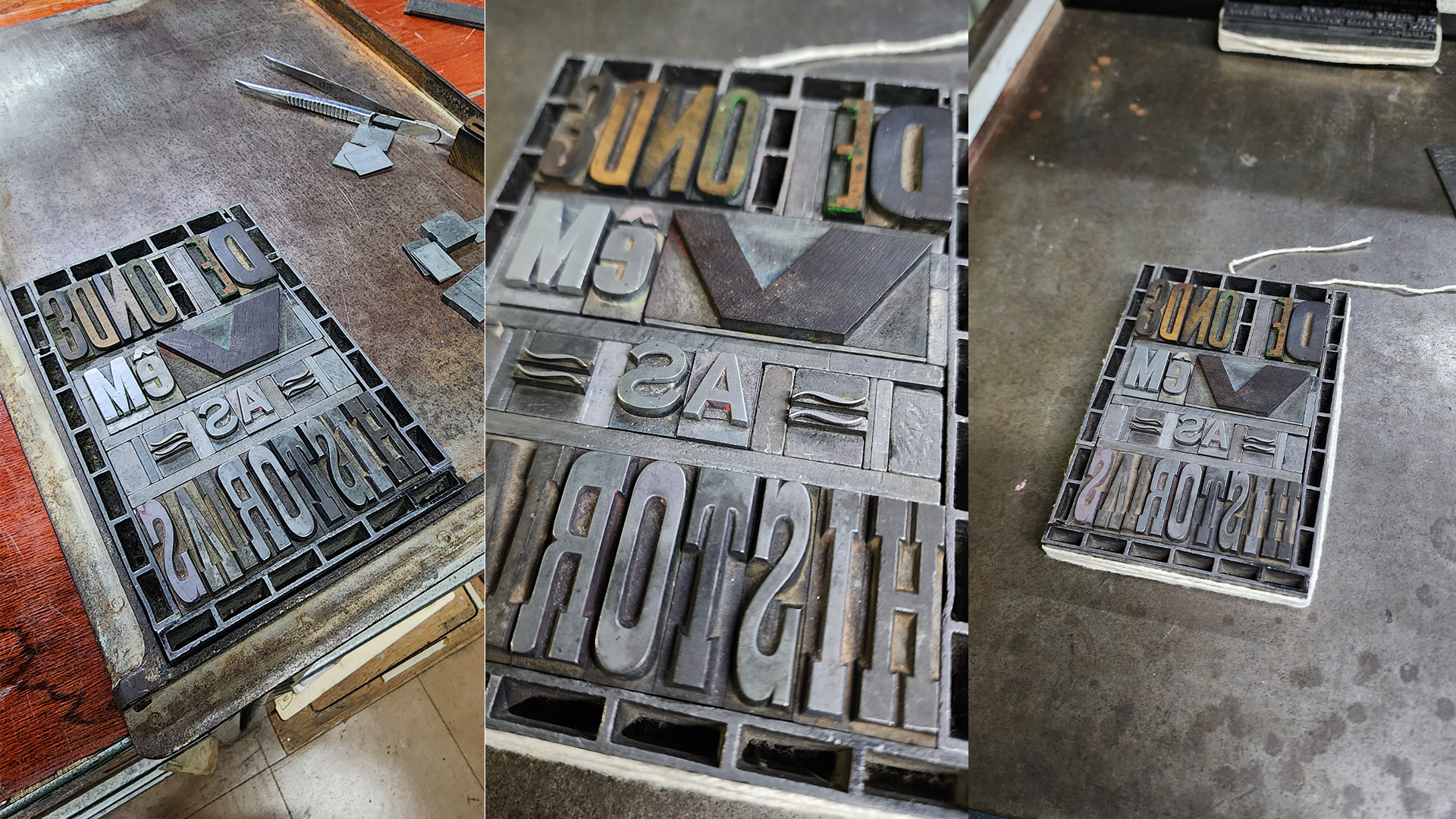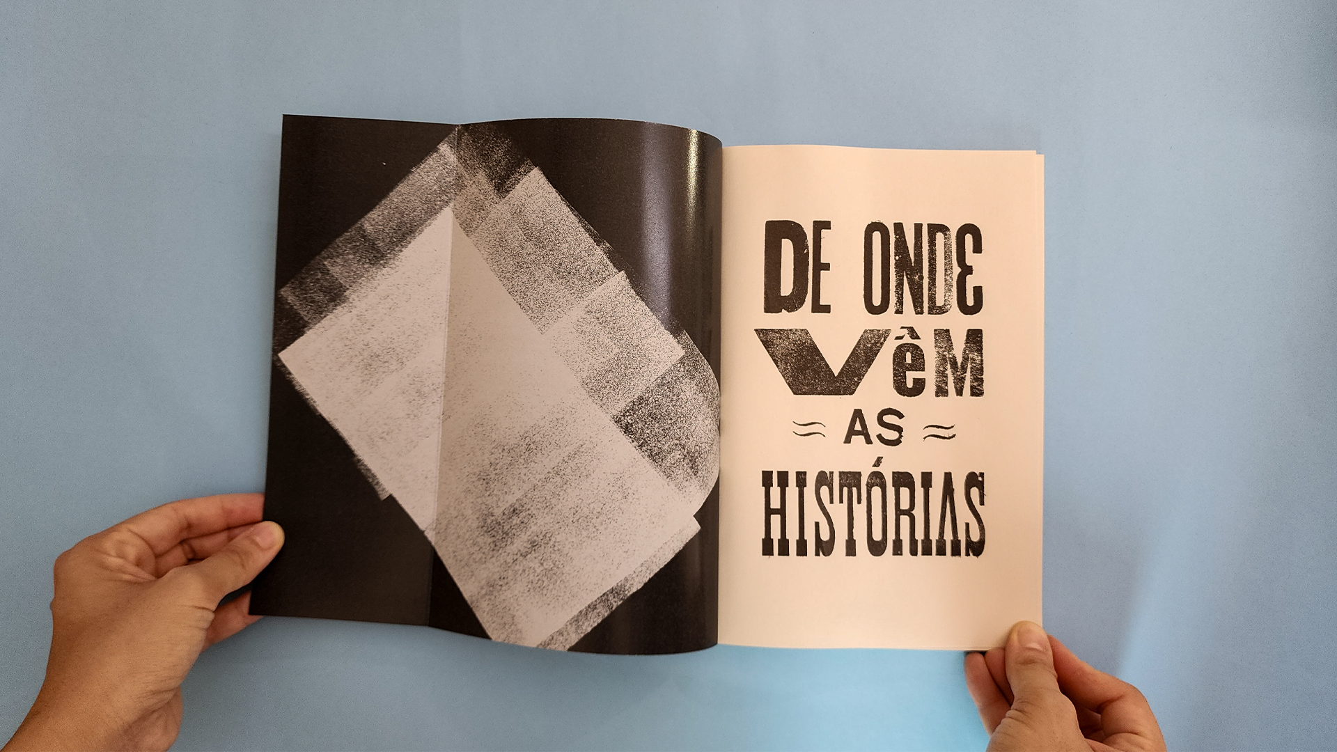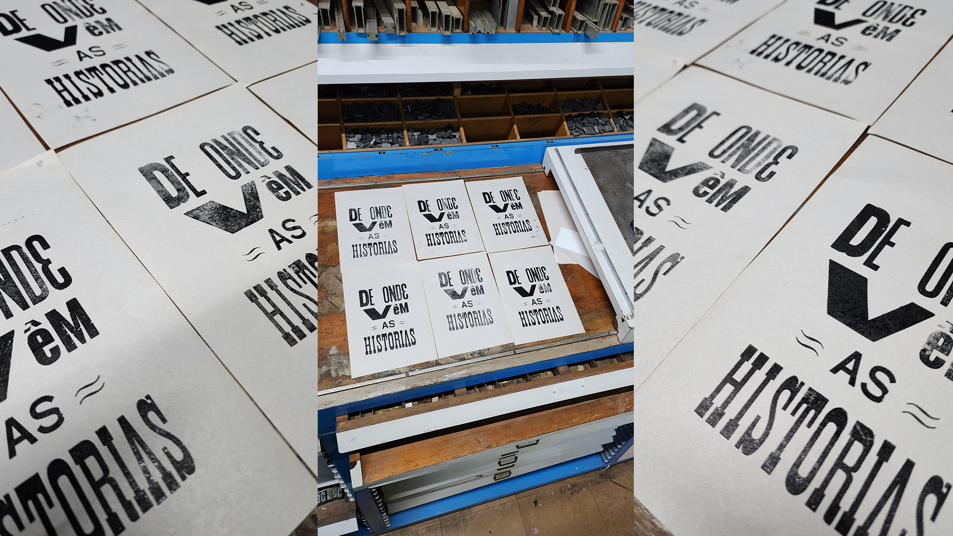 Para a criação da capa e projeto gráfico deste livro, retornei aos tipos móveis e suas texturas. O título da capa foi impresso na Tipografia Matias, em Belo Horizonte, utilizando tipos de metal e madeira variados. Também na gráfica produzi uma grande variedade de texturas com o rolinho de teste de impressão, aplicadas nas aberturas de capítulo junto com números que também são resgates de tipos móveis.