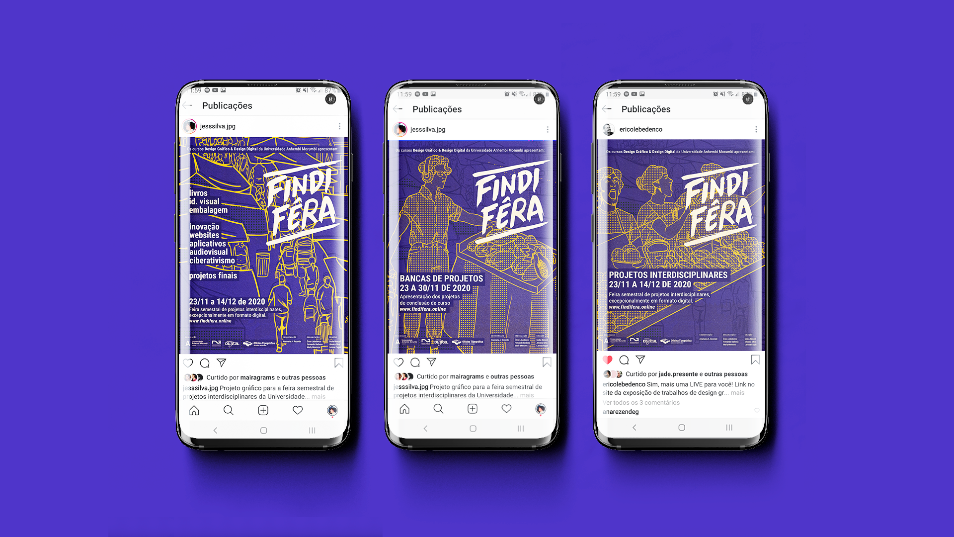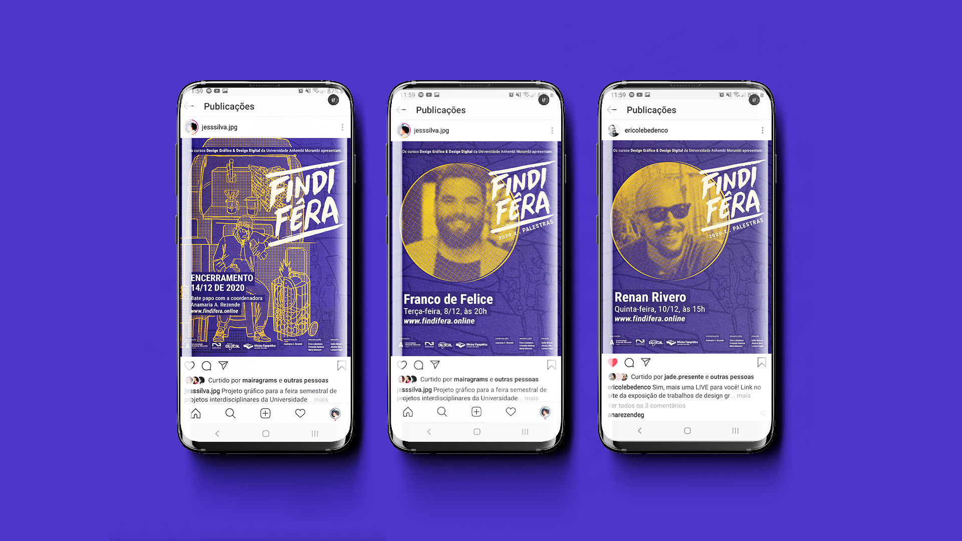 Foram desenvolvidas peças para divulgação em mídia social, já que o evento seria completamente online, e também o site da feira, principal componente do projeto, onde são reunidos todos os projetos e a programação completa de palestras e bancas.