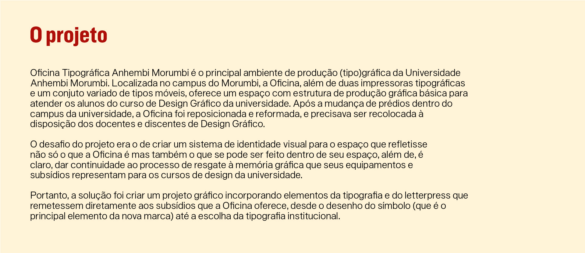 Projeto de identidade visual para a Oficina Tipográfica da Universidade Anhembi Morumbi.