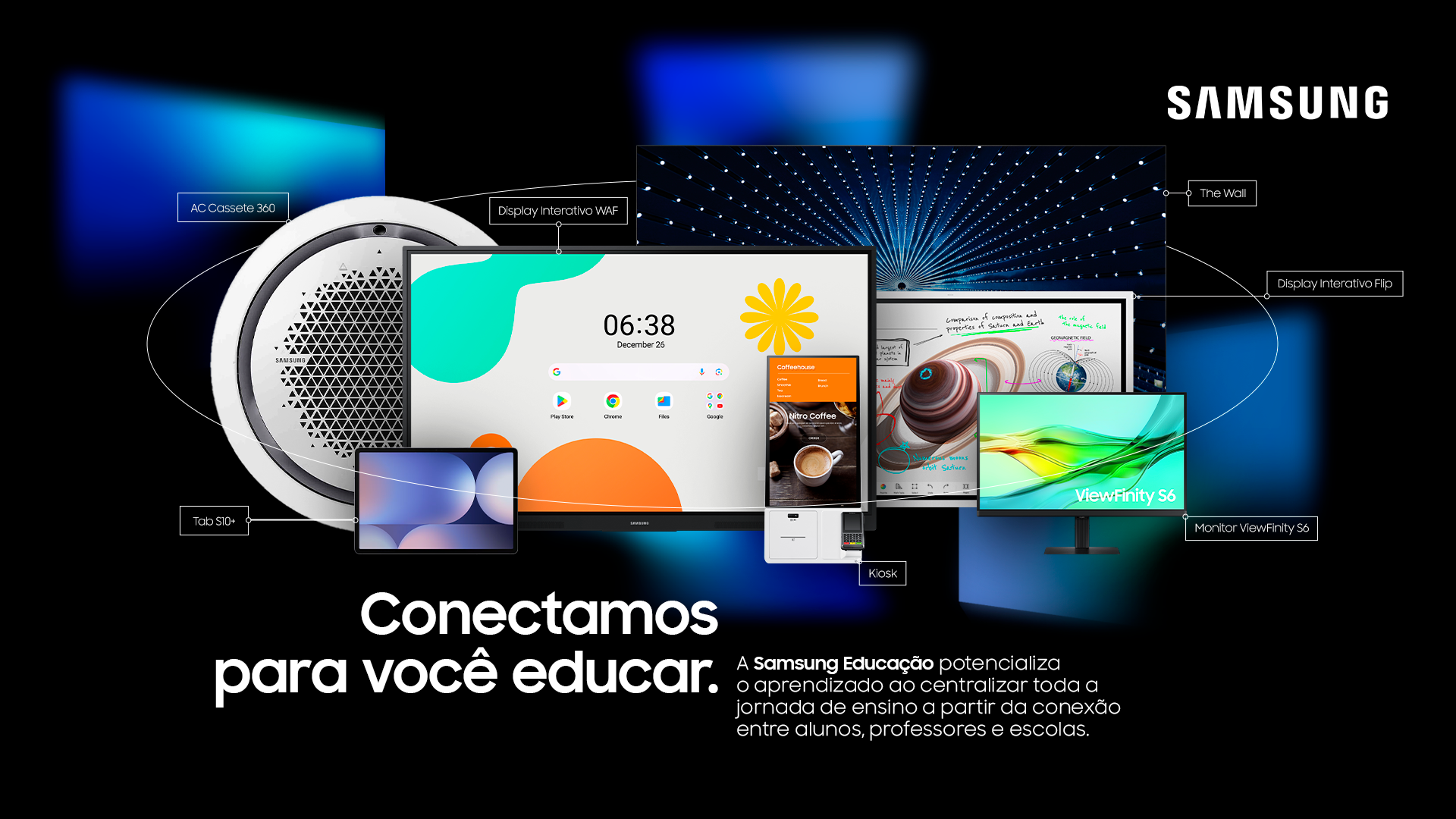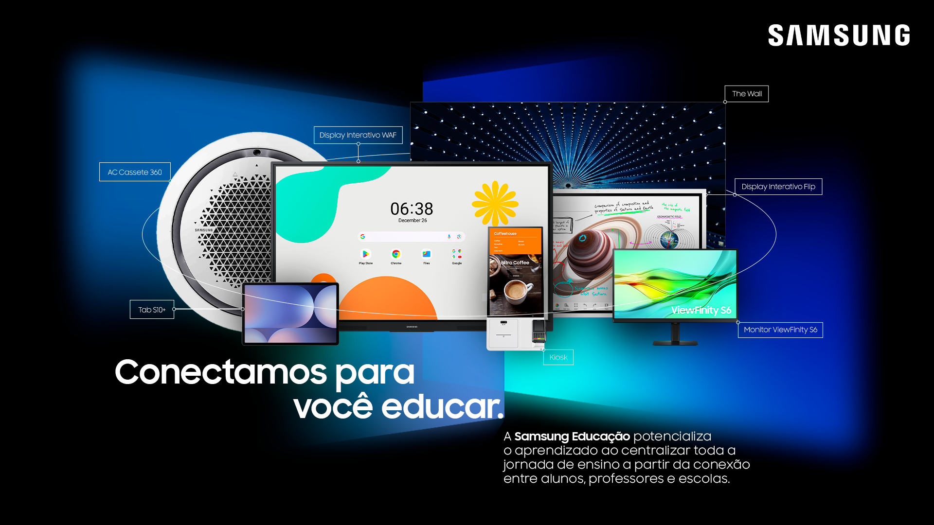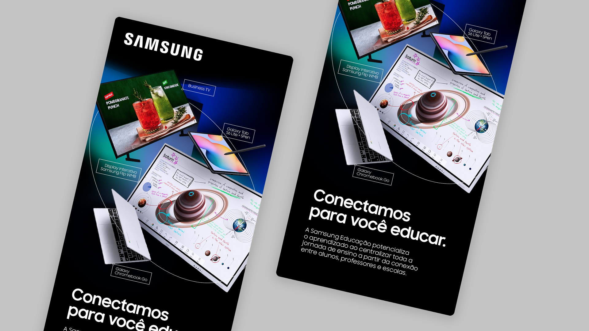 Direção de arte e conceituação visual para a vertical educacional da Samsung Brasil, em colaboração com Facción Cartel Criativo.