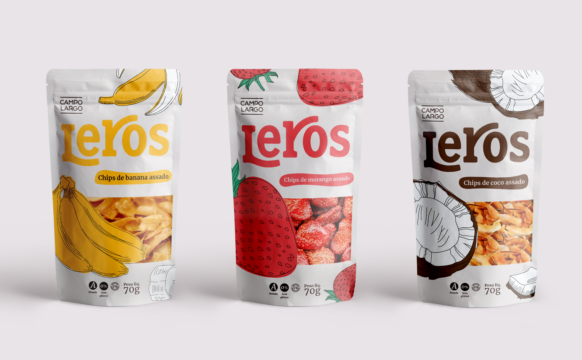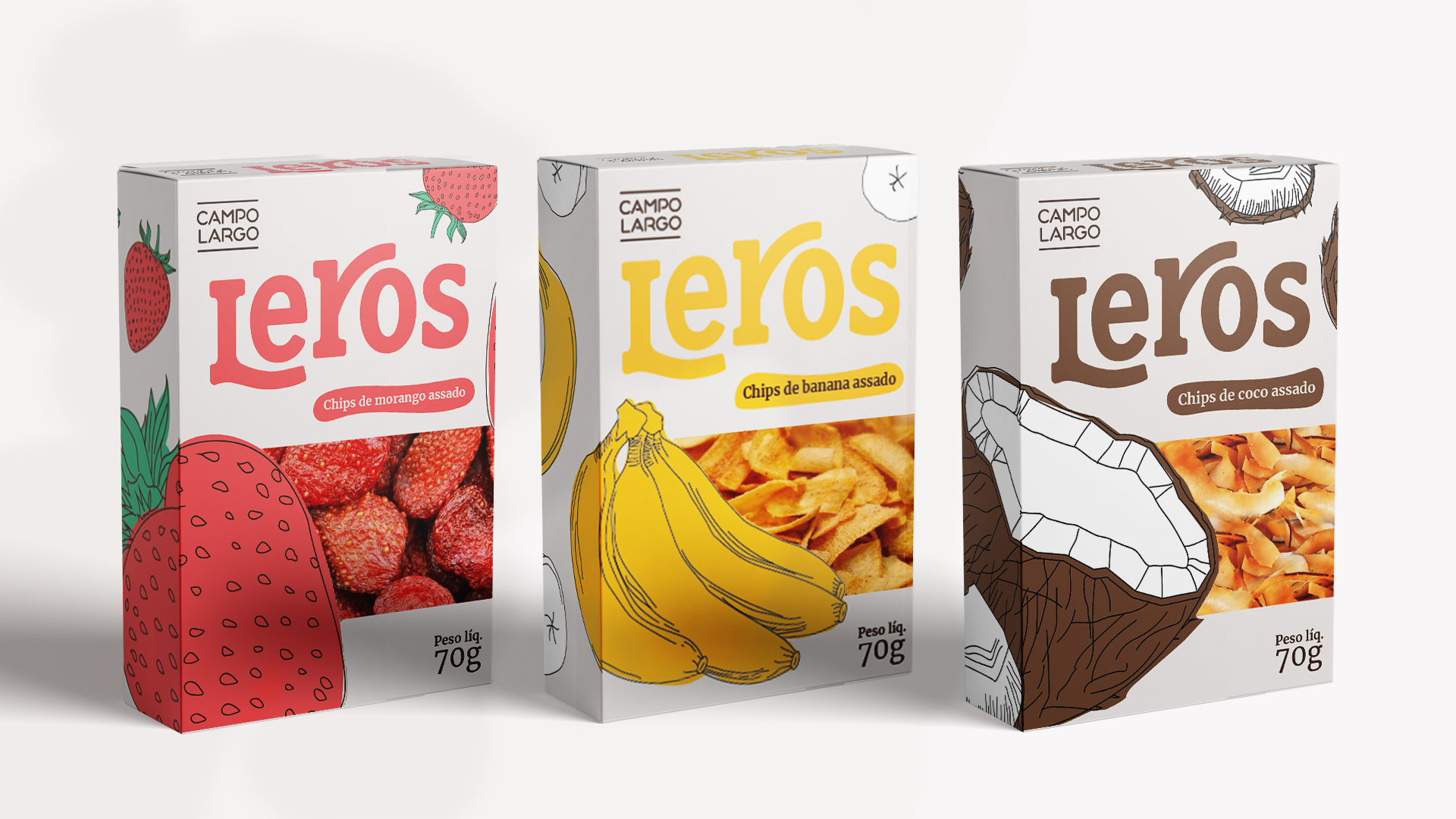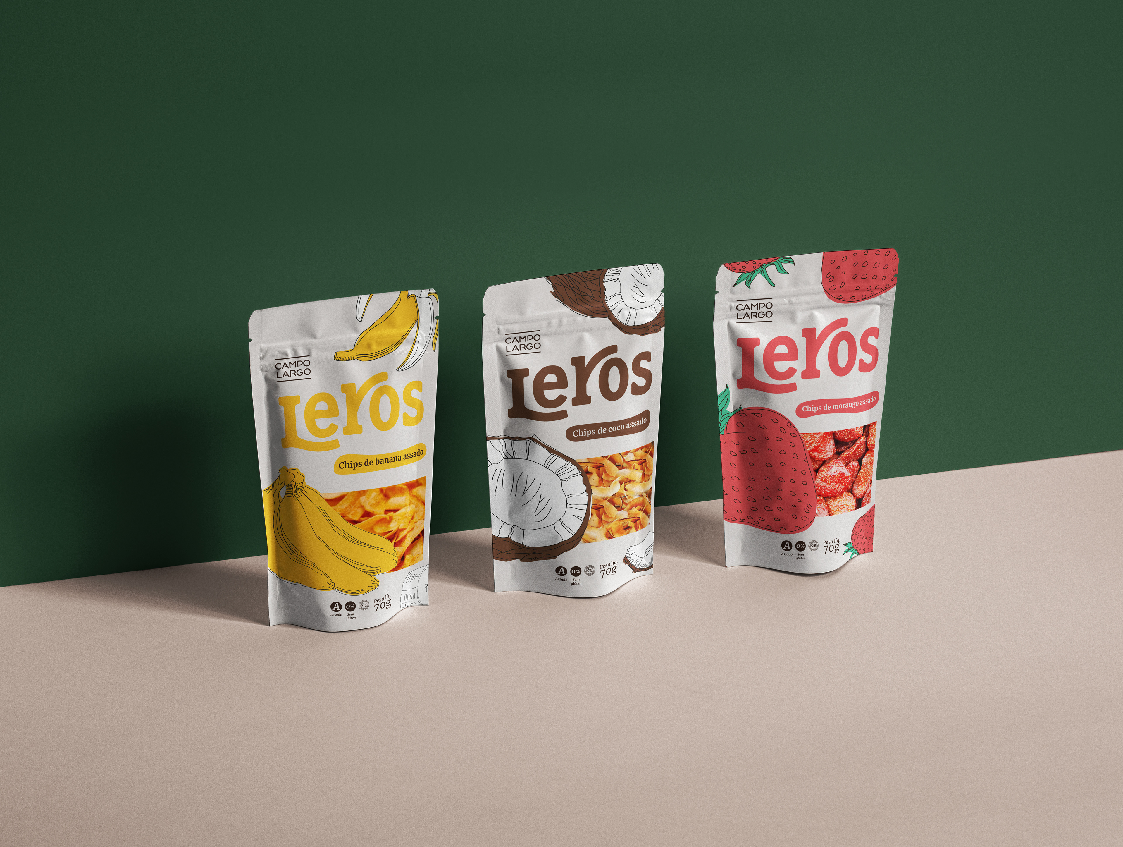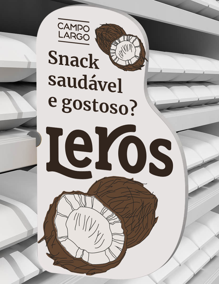 Leros é a criação de uma nova família de embalagens de snacks saudáveis com o objetivo de ser uma alternativa de lanche rápido e gostoso, sem deixar de ser saudável. E, claro, sustentável, em todos os aspectos possíveis. Para isso, escolhemos a marca Campo Largo, que atualmente é uma das referências em sustentabilidade na indústria alimentícia nacional.