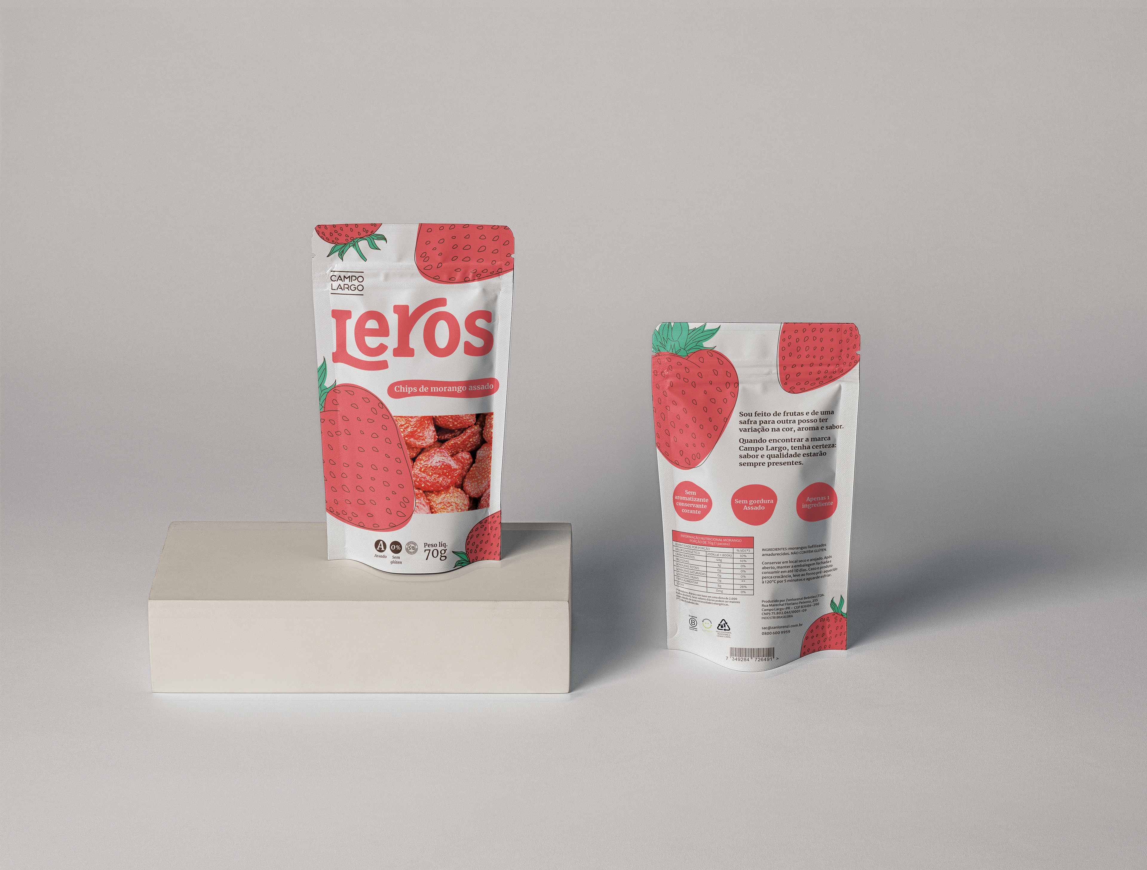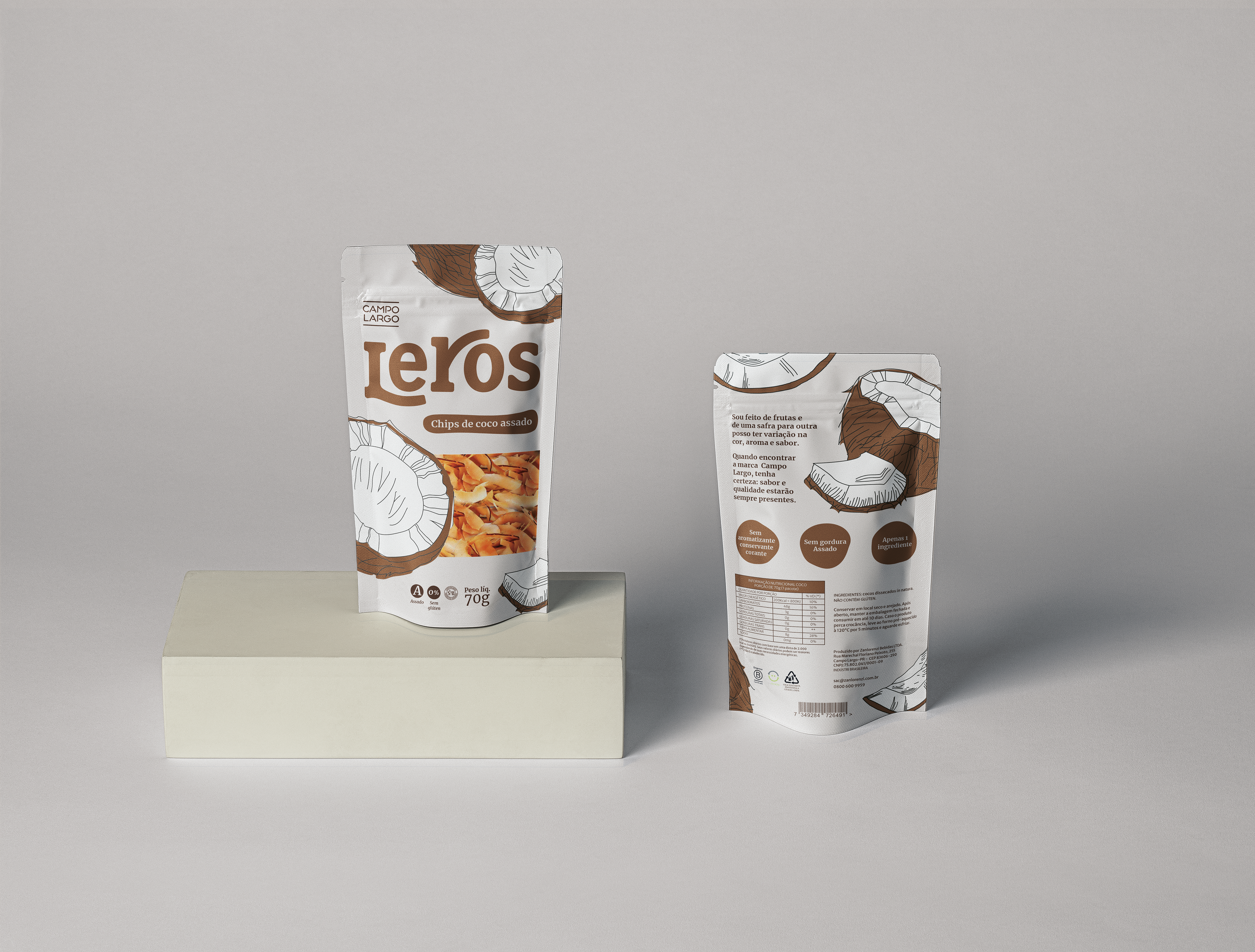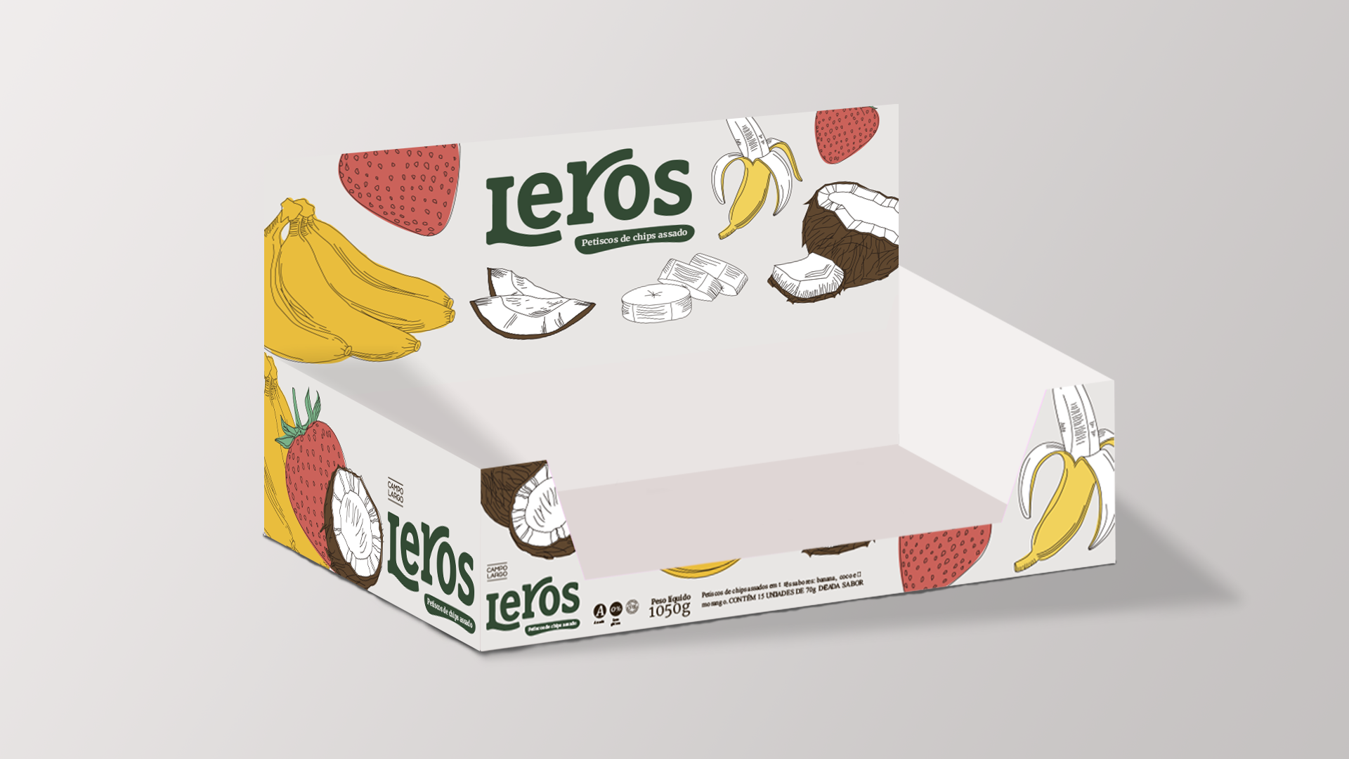 Leros é a criação de uma nova família de embalagens de snacks saudáveis com o objetivo de ser uma alternativa de lanche rápido e gostoso, sem deixar de ser saudável. E, claro, sustentável, em todos os aspectos possíveis. Para isso, escolhemos a marca Campo Largo, que atualmente é uma das referências em sustentabilidade na indústria alimentícia nacional.